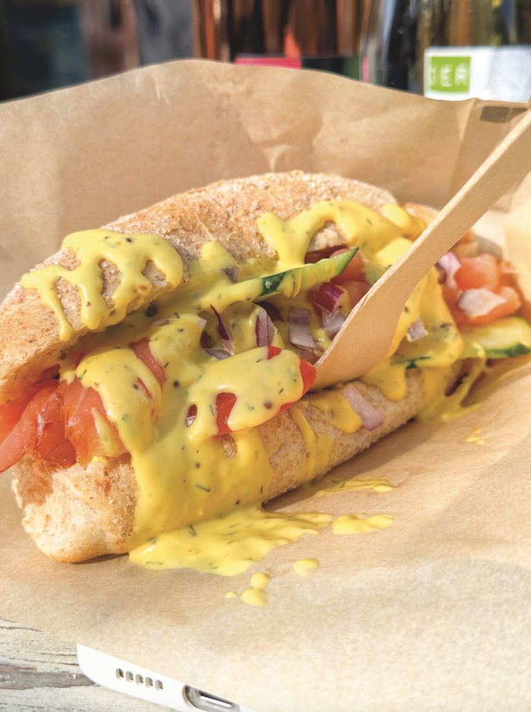 Gäste können aus Lachs, Matjes, Bismarckhering, Pulled Salmon, Brathering und Backfisch ihren Favoriten wählen. Auch spezielle Tagesangebote wie Gambas oder Flusskrebse stehen zur Auswahl, die mit frischen Zutaten wie Salat, Zwiebeln und Gurken kombiniert werden können – bevor das kulinarische Kunstwerk im letzten Schritt mit einer der gewünschten „Tunken“ – der Dressingsoße – garniert wird.