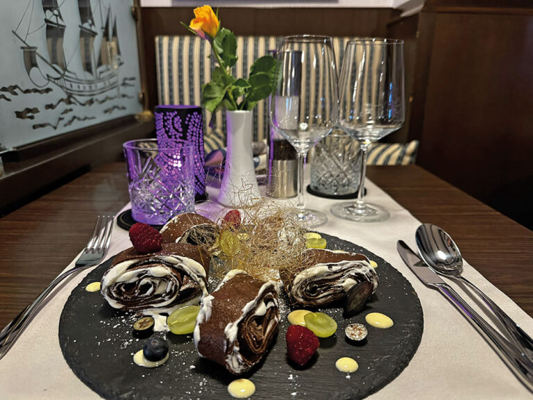 Seit 2023 wird der Betrieb vom gastronomieerfahrenen Rumänen Florin-Stefan Banescu betrieben, der zuvor als Barkeeper auf der Insel tätig war und fortan für frischen Wind in der Kleinen Möwe sorgt. Der verheiratete Vater einer vierjährigen Tochter lebt bereits seit über 15 Jahren auf Borkum und ist hier mit seiner gesamten Familie fest verwurzelt. „Aus unserer Familie sind alle Gastronomen“, erklärt er stolz. Demnach können sich Gäste und Insulaner garantiert darauf verlassen, hier gebührend empfangen und kulinarisch verwöhnt zu werden. Dabei setzt Banescu auf eine rundum erneuerte Speisekarte, die einem schnell das Wasser im Mund zusammenlaufen lässt. Von leckeren Vorspeisen wie z.B. die hausgemachte Fischsuppe, Bruschetta oder Caesar Salat über Hauptgerichte wie Lachsfilet im Sesammantel, Rumpsteak von der deutschen Färse, Original Wiener Schnitzel oder Pasta bis hin zu Desserts wie Schokoladensoufflé auf Himbeersauce und Vanilleeis oder ausgewählte Käsevariationen – das mediterran-norddeutsche Angebot in der Kleinen Möwe hält für jeden Geschmack etwas bereit.