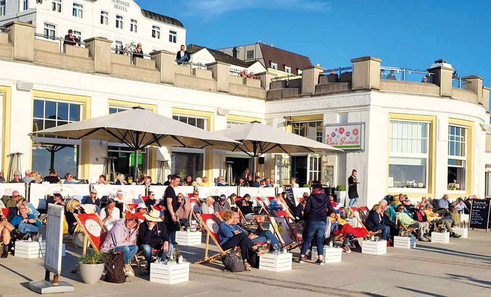 Wenn man den Tag auf Borkum gemütlich ausklingen lassen möchte, gibt’s dafür eigentlich nur eine Adresse: das Ria’s Beach. Direkt an der Strandpromenade gelegen, ist es bei Besuchern und Insulanern gleichermaßen beliebt. Sie kommen hierher, um entspannt mit Blick auf die Nordsee einen After-Work Cocktail zu genießen.