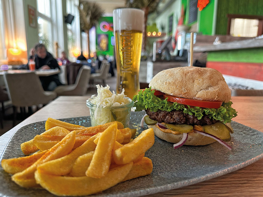 Frühstück, Burger, Steaks, Crêpes, Salate, Scampi in Knoblauchöl, Cocktails