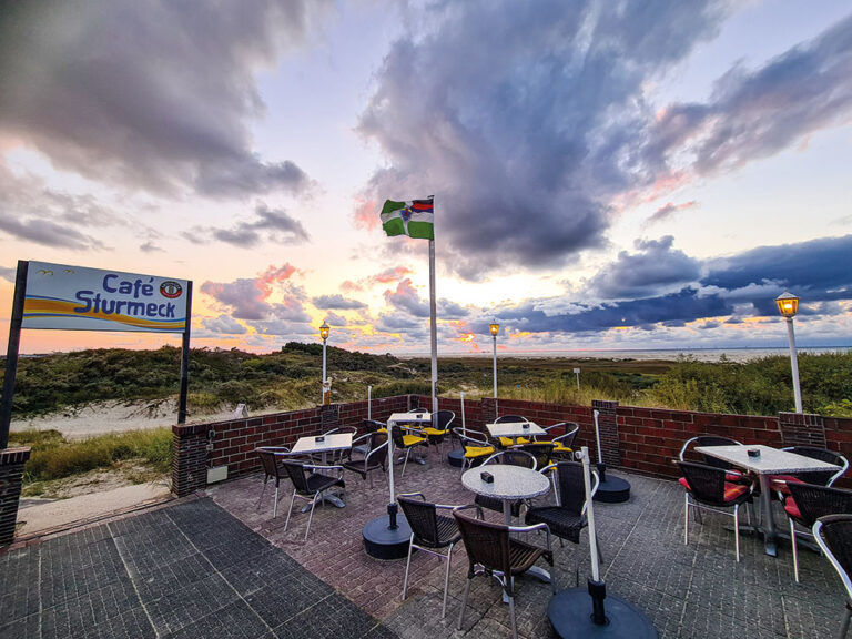 Sie haben nun auch Lust auf eine gekonnte Mischung aus beeindruckender Aussicht, leckeren Speisen und Getränken sowie Familientradition und einem Stück Borkumer Geschichte? Dann zögern Sie nicht, im Café Sturmeck einzukehren, das geöffnet hat, bis die Sonne im Meer versunken ist. Das Sturmeck-Team freut sich darauf, Ihren Urlaub ein Stücken schöner zu machen.