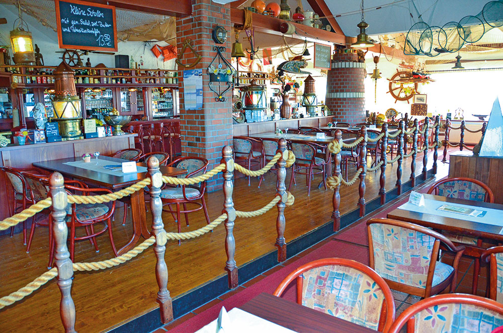 Große Fenster geben den Blick frei auf eine traumhafte Aussicht zu dem munteren Treiben von Segelyachten und Motorbooten. Und natürlich erwarten den Besucher kulinarische Köstlichkeiten vom Feinsten.